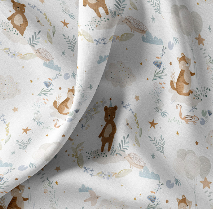 Die Baumwolle „Forest Party“ ist ein entzückender Kinderstoff, der kleine Bären, Igel und Füchse beim fröhlichen Waldabenteuer zeigt – sogar mit Ballons und weiteren verspielten Motiven. Der leichte Baumwollstoff ist angenehm weich, lässt sich leicht vernähen und eignet sich wunderbar für Kinderkleidung, Bettwäsche, Kissen oder süße Accessoires fürs Kinderzimmer. Und wie immer kannst Du ihn schon ab 10 cm bestellen.