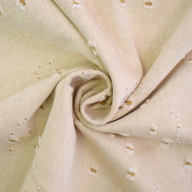 Der Broken Jeansstoff aus Fibre Mood Ausgabe 38 ist ein moderner Denim mit besonderer Oberfläche und spannender Struktur. Die feine, helle Beigenuance und die dezenten Broken-Details verleihen dem Stoff einen lässigen, zugleich hochwertigen Look. Dadurch eignet er sich ideal für kreative Nähprojekte mit individuellem Charakter.