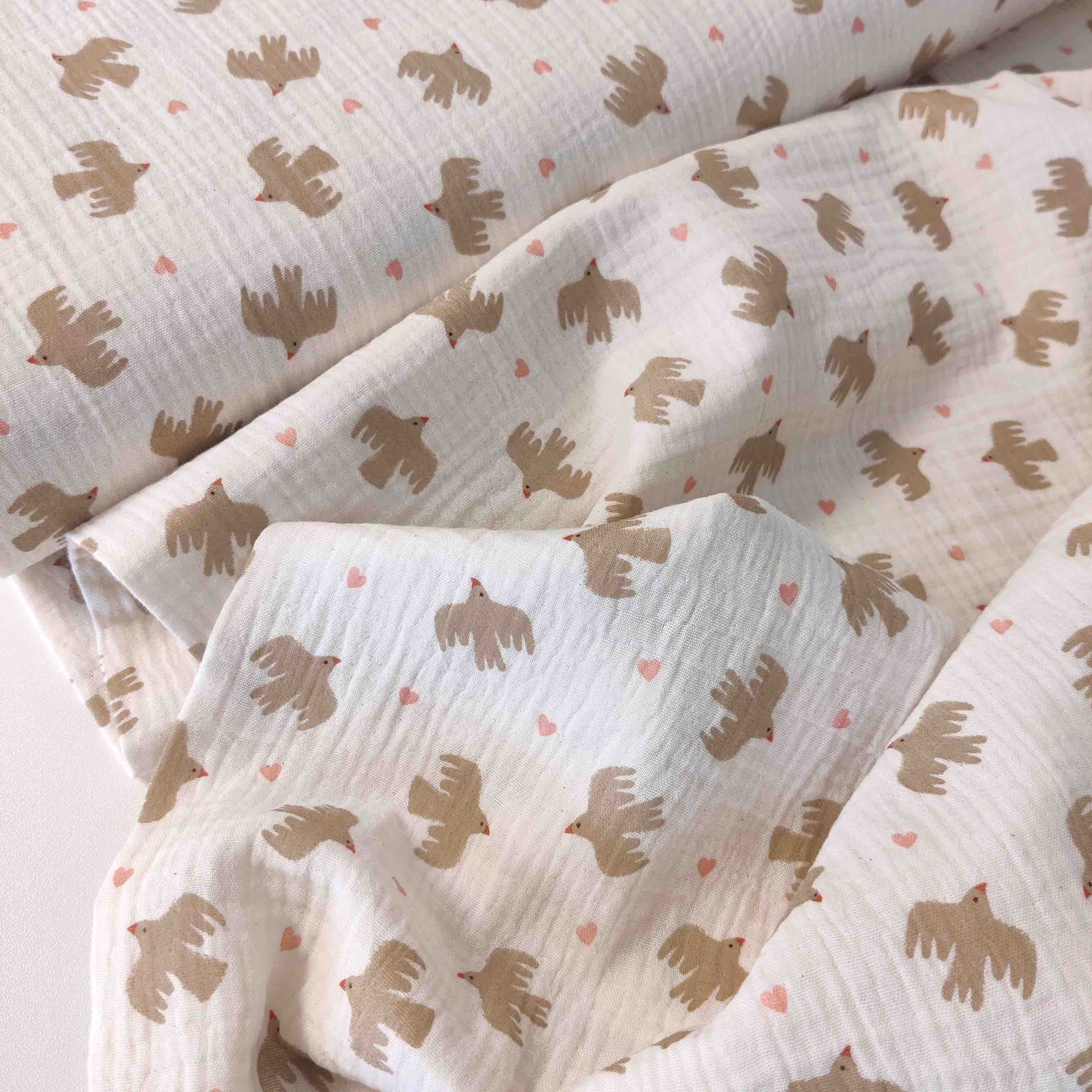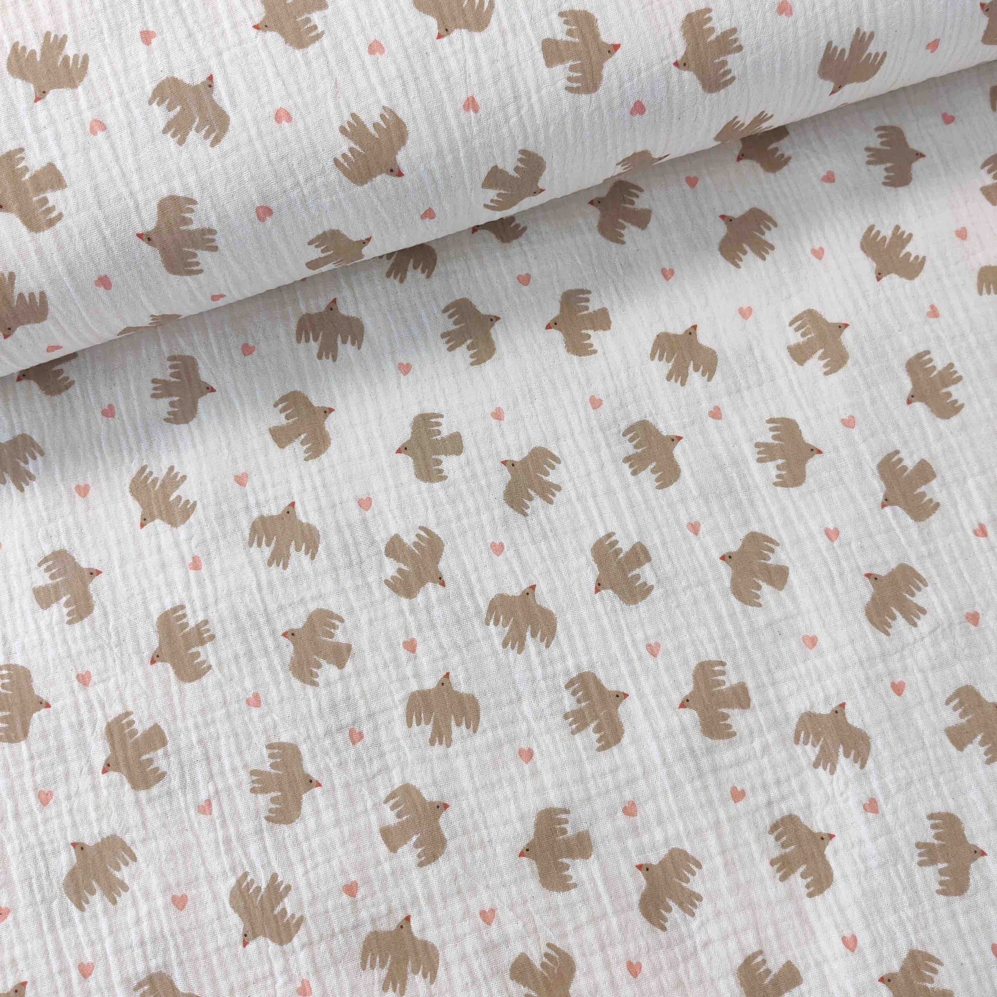 Musselin mit Vögeln in ca. 3 x 3 cm Größe.