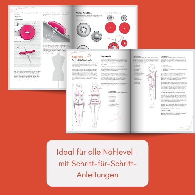 Es umfasst Grundlagenthemen wie Nähmaschinen, Werkzeug und Materialkunde sowie Schnittanpassung, Maßnehmen, Zuschneiden, Anprobe und Bügeltechnik. Verarbeitet werden auch Profi-Techniken wie Zierstiche, Absteppen und das Arbeiten mit verschiedenen Stoffarten. Praktische Schritt-für-Schritt-Anleitungen sowie Fotostrecken und Zeichnungen helfen dir dabei, Ergebnisse zu erzielen, die aussehen wie vom Schneider geschaffen. Ein Schnittmuster für ein Kleid zum Download ist außerdem inklusive – perfekt zum Üben.